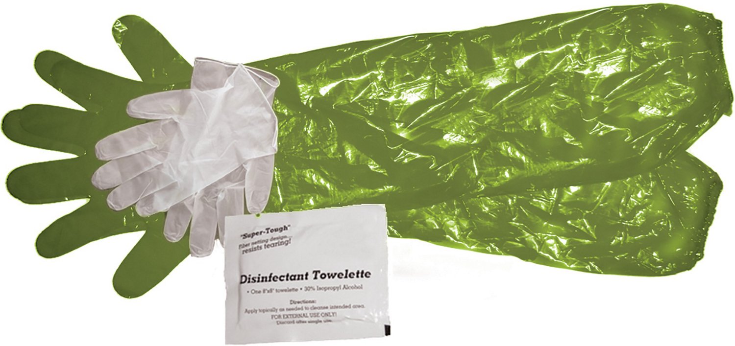 Clean and prepare your next trophy using the HME Products Game Cleaning Gloves with Towelette. The shoulder-length design lets you prepare without worry, while the elastic bands make sure the gloves remain secure. A disinfectant towelette comes included for extra cleanliness.
