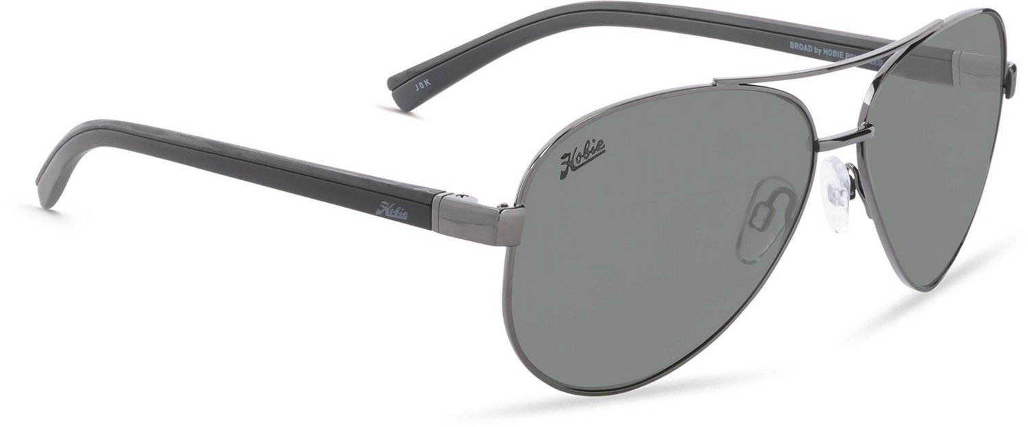 Look good out on the water sporting the Hobie Polarized Men's Broad Polarized Sunglasses. The stainless steel frame is lightweight and durable, and the polycarbonate lenses are durable for comfort and safety. These sunglasses deliver 100% UV protection to keep your eyes safe, and the polarization help you see clearly on the water.