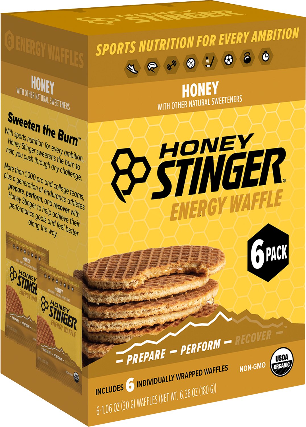 Prepare yourself for what lies ahead with the Honey Stinger Waffles 6-Pack. These waffles feature a sweet honey-infused filling between 2 soft-baked waffles for a delicious texture contrast that satisfies your cravings. Packed with the fuel you need to perform well, these waffles are organic and non-GMO for a guilt-free, energy-packed treat.