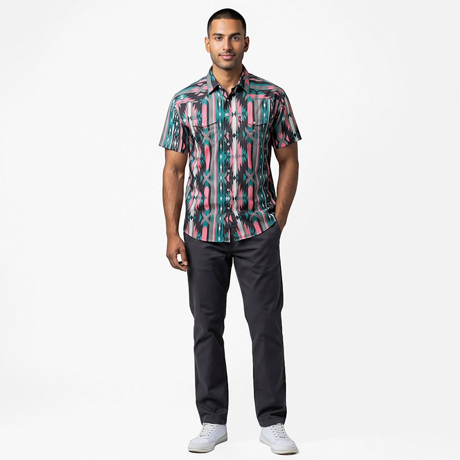Feel the breeze when you wear the Hooey Men's Sol Button Up Shirt. The polyester material provides a comfortable feel, while the moisture wicking technology helps keep you cool and dry. Built-in UPF 40 sun protection shields against harmful UV rays, and the vented western yoke promotes breathability.