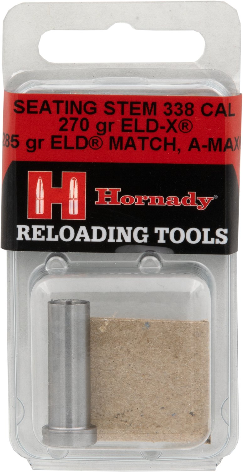 Customize your ammunition with the Hornady 338 Cal Bullet Seating Stems. The stems are compatible with Hornady Custom Grade Dies, and they are machined to fit A-MAX, A-Tip, ELD Match, ELD-X, FTX and MonoFlex bullets.