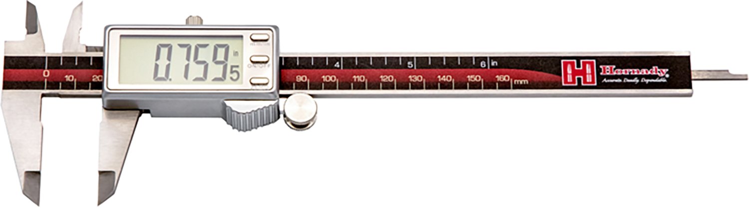 Ensure accurate measurements with the Hornady Digital Caliper. It precisely measures case length, inside and outside case diameter, bullet length, primer pocket depth, and overall cartridge length. The quick repeat and measuring speed creates a quick process, and its extra large LCD screen offers an easy read. The protective storage case offers secure containment.