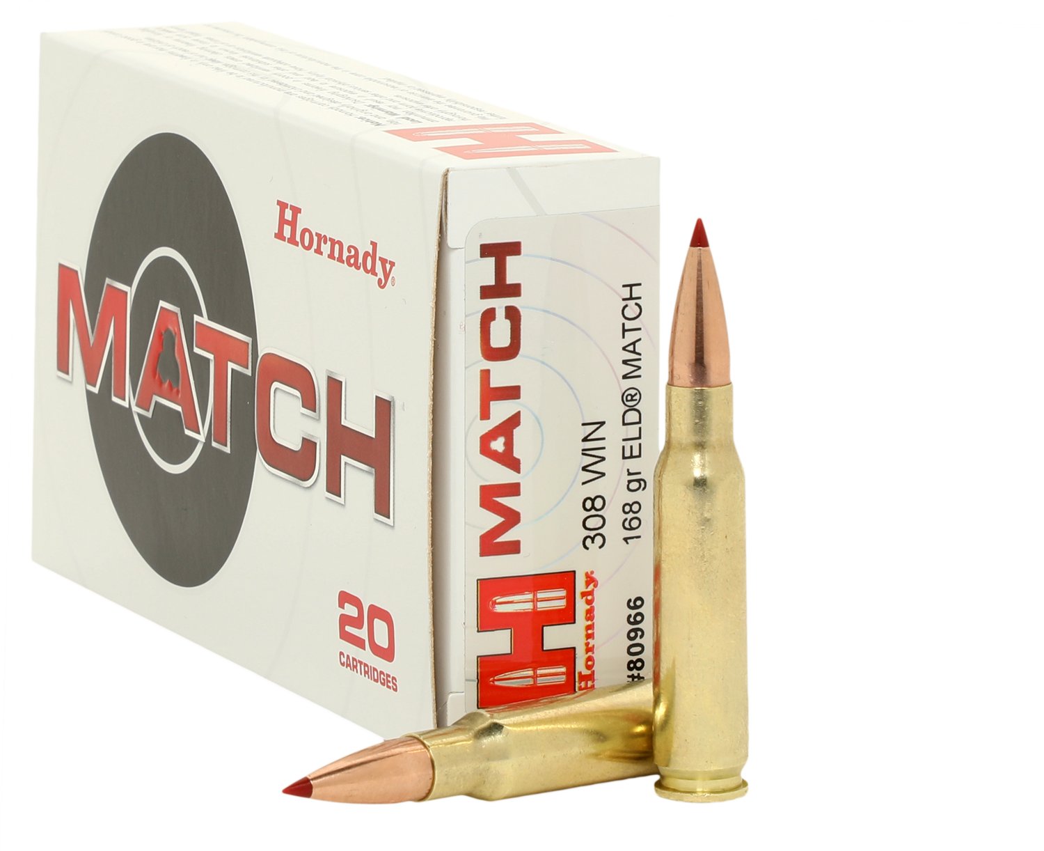 Designed for target shooting and matches, the Hornady ELD Match Rifle Ammunition comes in a 20-round box. The bullets feature AMP® jackets, Heat Shield™ tips and powder that's been optimized for pressure, velocity and accuracy.