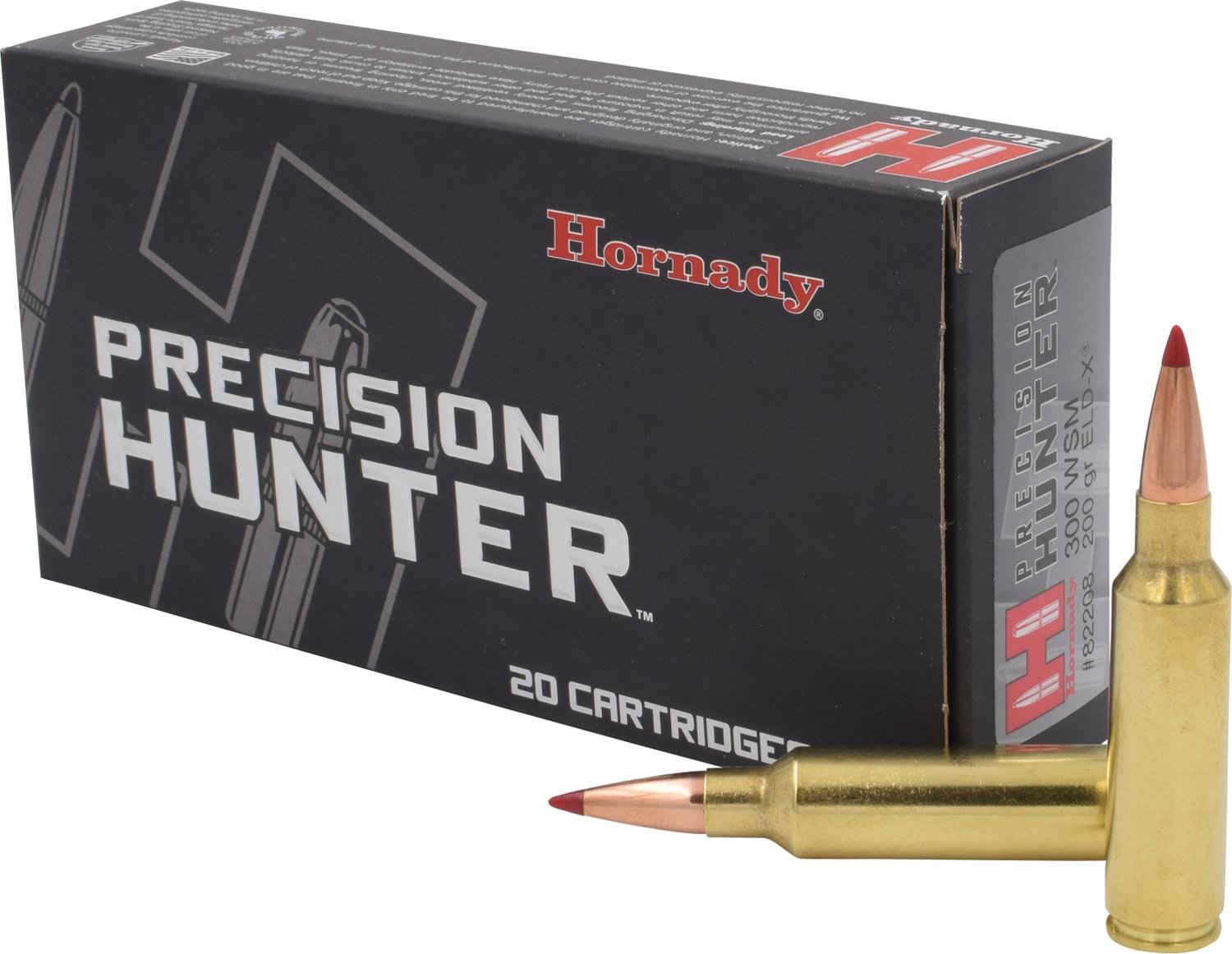 Melding terminal performance and accuracy, the Hornady ELD-X® Precision Hunter® .300 WSM 200-Grain Rifle Ammunition is engineered with clean-burning propellants and loaded to uniform capacity for consistent shooting performance. The Heat Shield™ tips offer use for a variety of hunting applications because of their reliable terminal performance at a variety of different ranges.