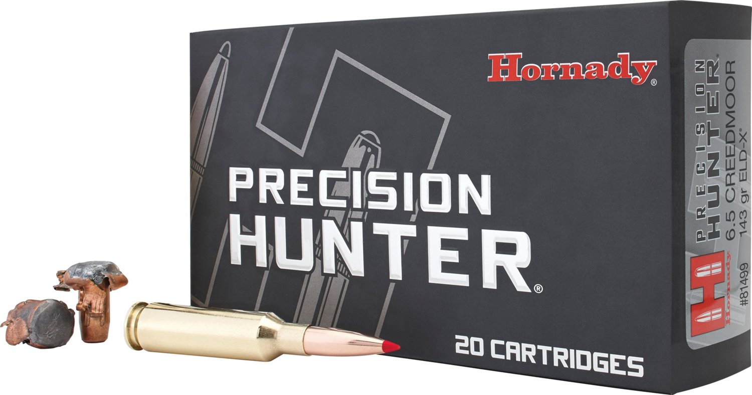The Hornady ELD-X™ Precision Hunter™ 6.5 Creedmoor 143-Grain Rifle Ammunition features ELD-X™ bullets with Heat Shield™ tips and help you achieve terminal performance at practical ranges. 20-round box.