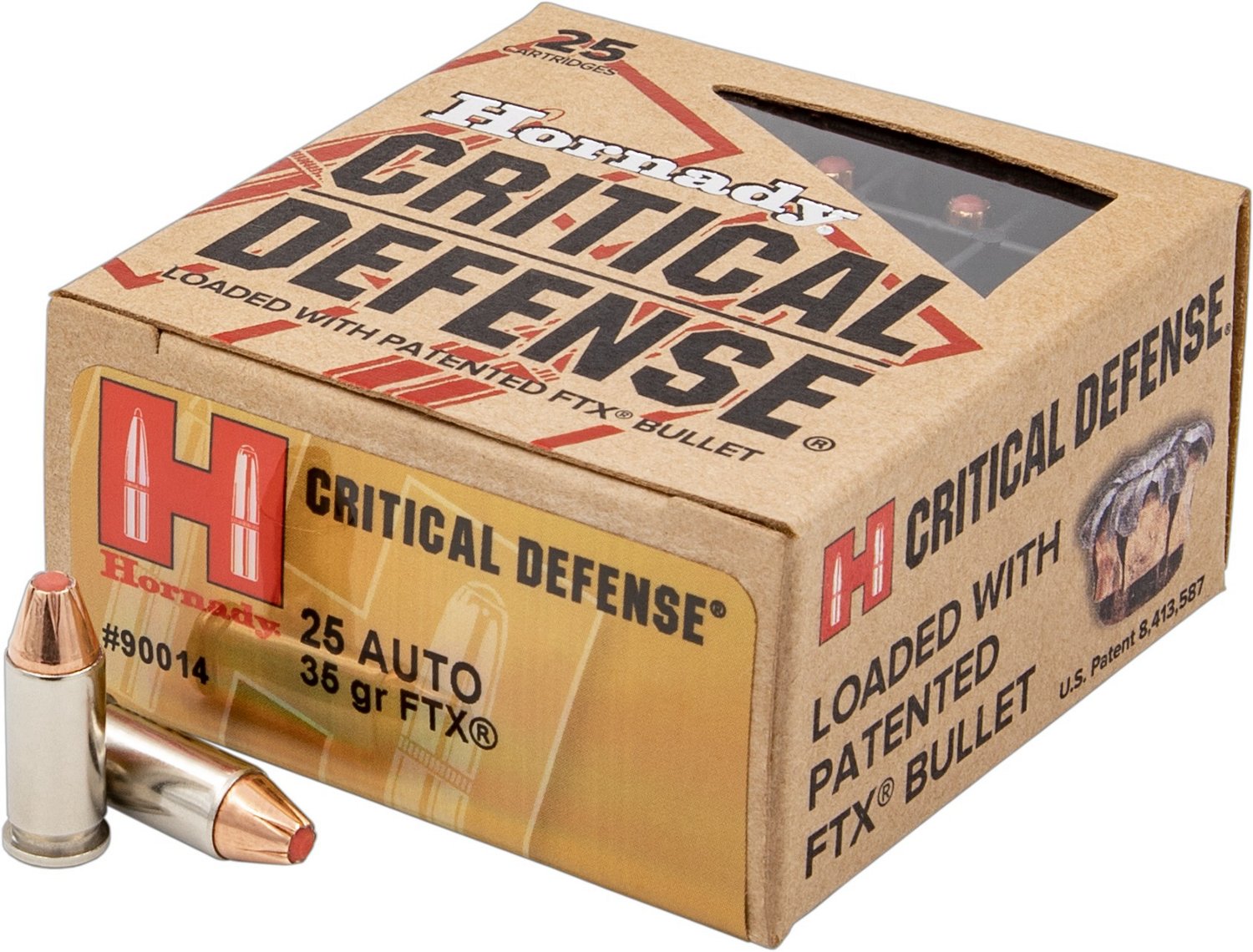 Make sure you are well-defended with the Hornady FTX Critical Defense .25 Automatic 35-Grain Pistol Ammunition. The FTX® bullet technology provides consistent expansion, while the optimized propellants burn quickly to help hinder recoil and muzzle flash. The nickel-plated cases are corrosion resistant.