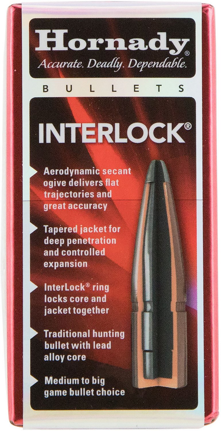 Take aim with confidence when you have the Hornady InterLock 405 Cal .411 300-Grain Rifle Ammunition - 50 Rounds. This 405 Cal .411 caliber ammo is ideal for large and dangerous game hunting between 300 to 1500 pounds. The tapered jacket, Spire Point bullets are crafted with upper section inner grooves for controlled expansion and feature InterLock® rings, 1-piece cores and a Cannelure design. Comes with 50 rounds per box.