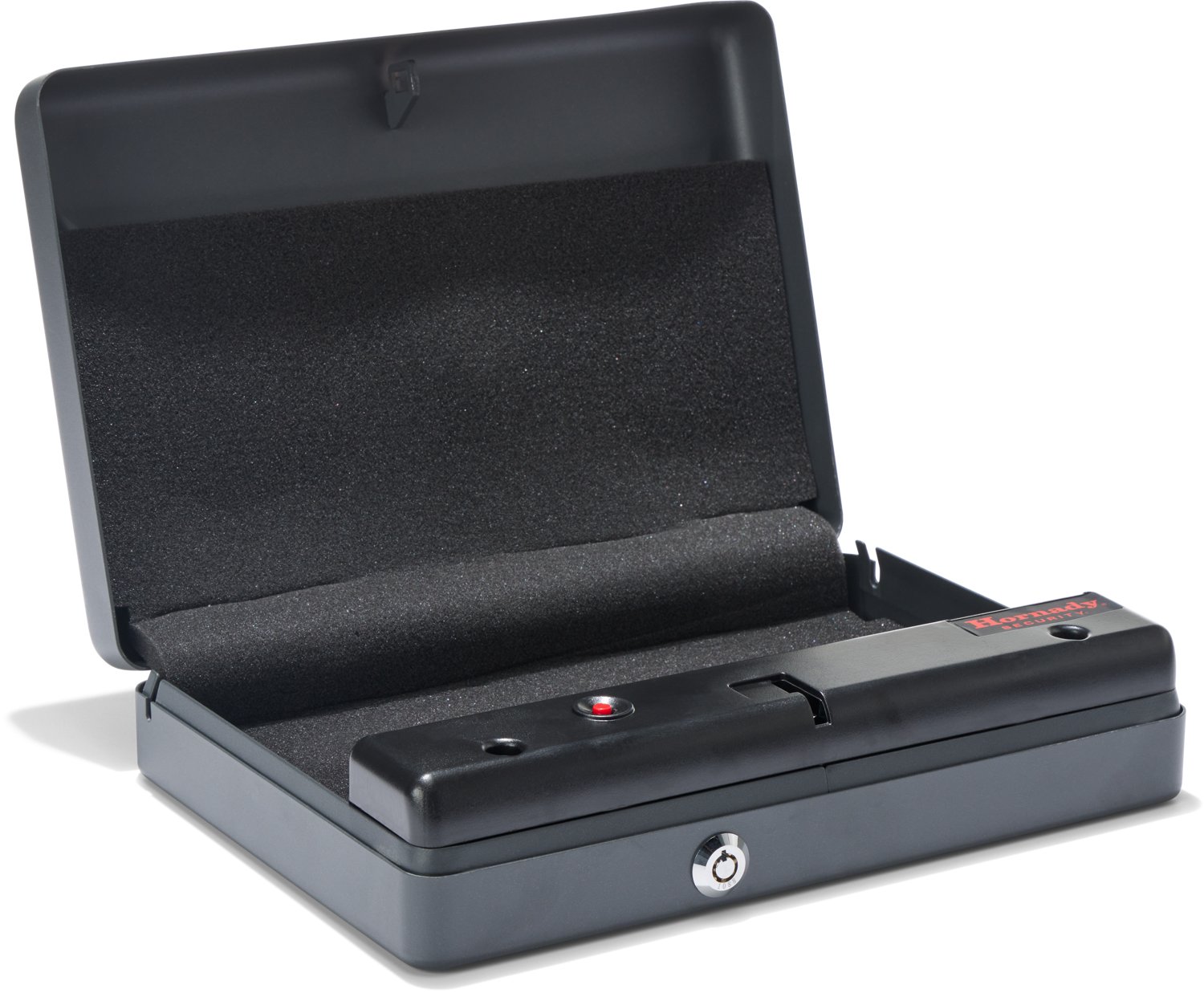 Enjoy convenience and peace of mind with the Hornady One-Gun RFID Top Load Gun Vault. The durable construction is made with 16-gauge steel and the RFID opening system is programmable and provides fast and dependable access.