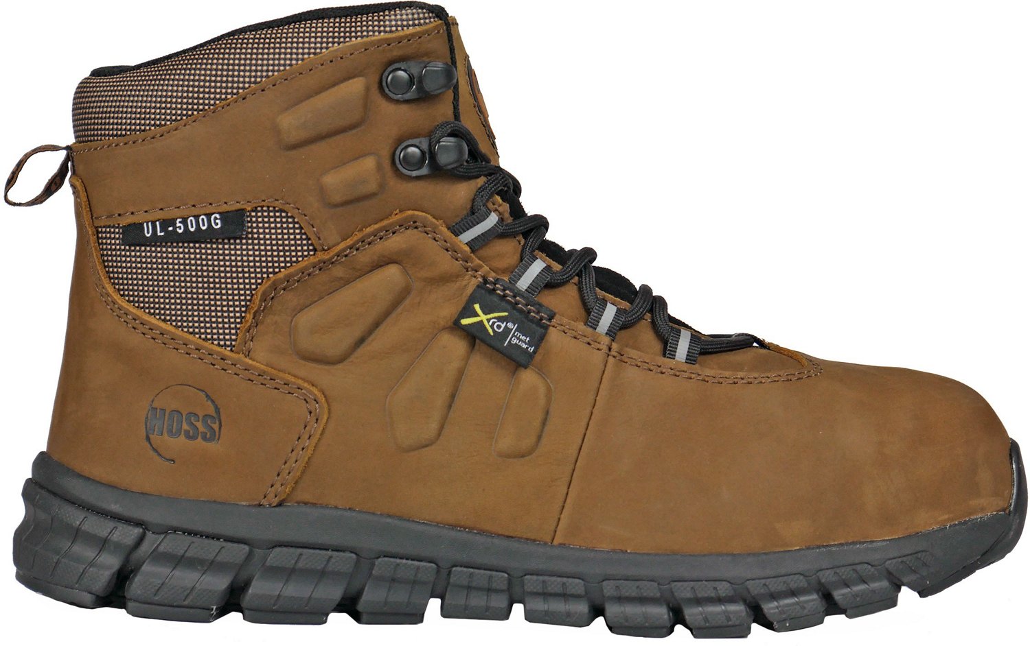 Protect your feet on the job with Hoss Boot Company Men's Tickaboo Met Guard Ultra Lite PR Composite Safety Toe Lace Up Work Boots. The full-grain leather uppers are extremely durable with ballistic nylon and PU reinforcement and waterproof membranes. Rebound cushioning and removable insoles enhance comfort while EVA and rubber rubber outsoles offer slip-resistant traction. 100% metal-free and ASTM F2413-18 compliant.