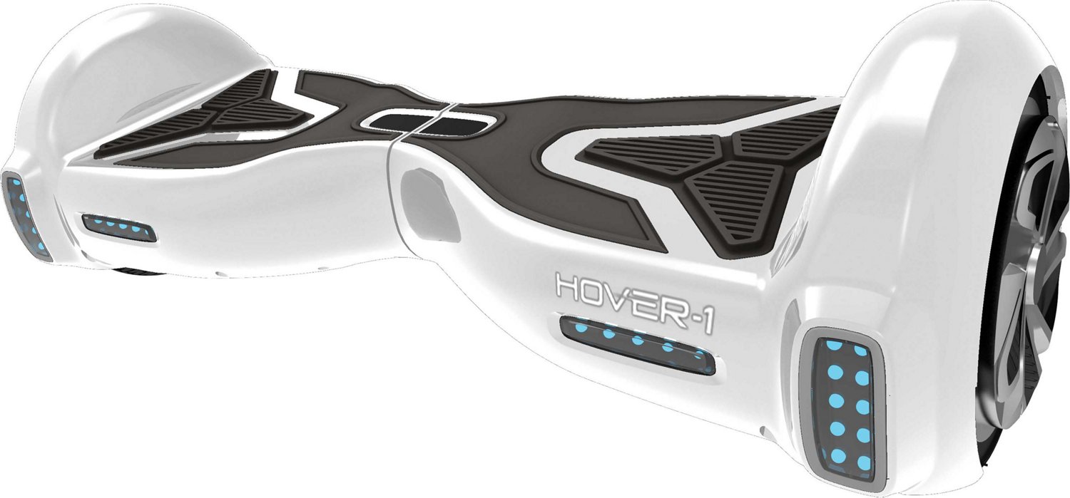 Take a ride on the Hover-1 H1 Hoverboard. The 400-watt motor delivers speeds up to 9 miles per hour, while the two 6.5-inch tires provide a smooth ride. The built-in Bluetooth® speaker lets you listen to your favorite music, and the color-changing LED headlights create an eye-catching look.
