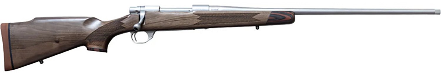 The Howa 1500 Sporter Deluxe Walnut 7mm Rem Mag Bolt Action Rifle is bolt action and has a 3+1-round capacity. It's built with a rifled threaded stainless steel barrel, stainless steel frame and a Deluxe Turkish walnut stock. An HACT trigger, rubber recoil pad and a picatinny rail scope base complete the design.