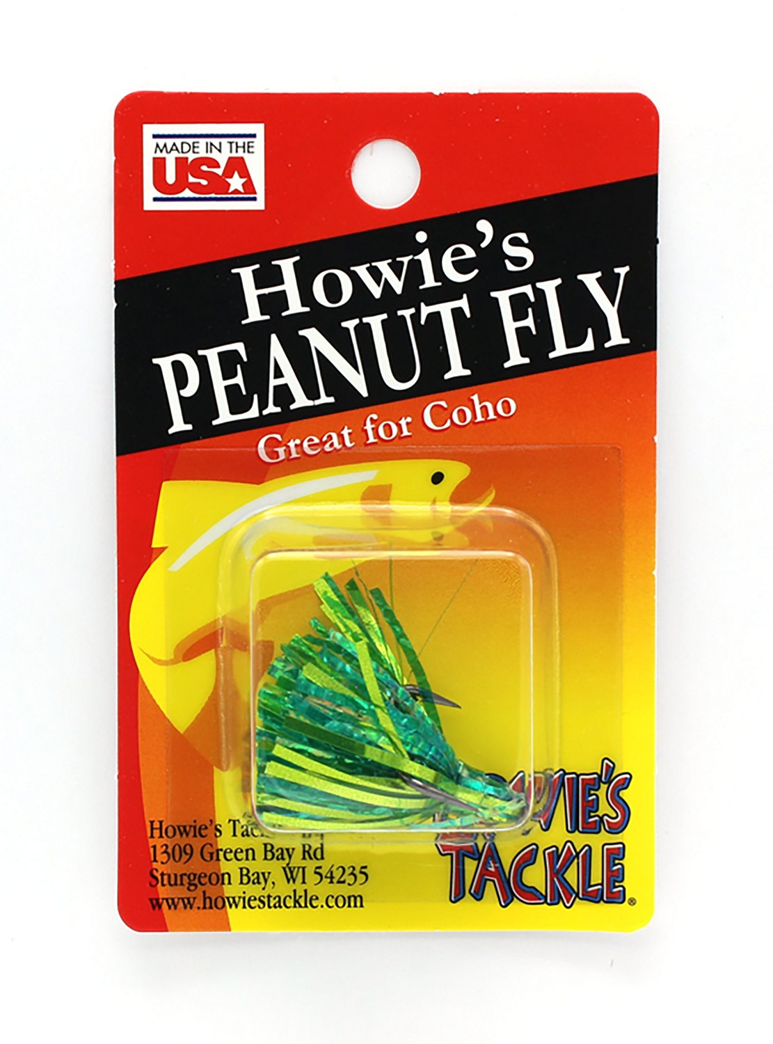 Fish for salmon, trout and steelhead with the Howies Peanut Fly. The hand-tied skirt produces flashy action, while the corrosion-resistant rigging ring affords durability. The ultra-sharp treble hook offers a secure hold.