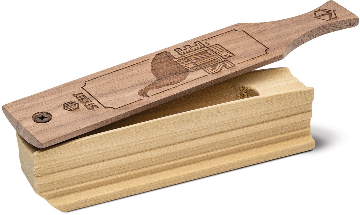 For loud and clear turkey calls, trust the HS Strut Suzie Snood Box Call. This box call is crafted from a single billet of select poplar wood with a walnut wood paddle for durability. It emits both realistic high-pitched yelps and turkey calls as well as soft clucks and purrs for versatile use.