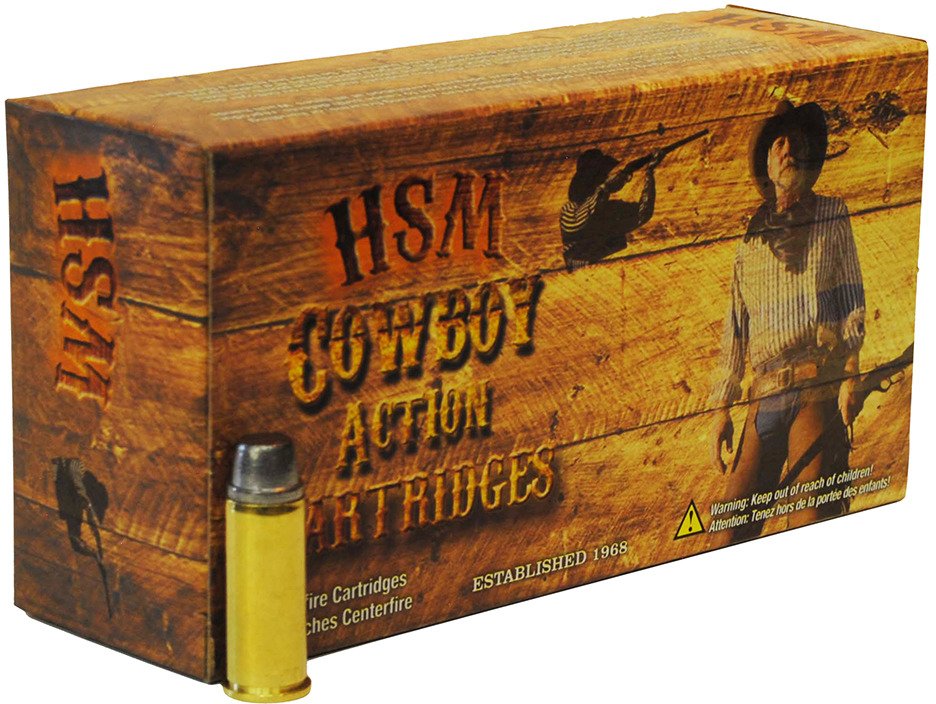 Keep your firearm at the ready with the HSM Cowboy Action RNFP .45 Colt 250-Grain Centerfire Handgun Ammunition. Fitted with brass cases, these round-nose flat-point bullets come in a 50-round box.
