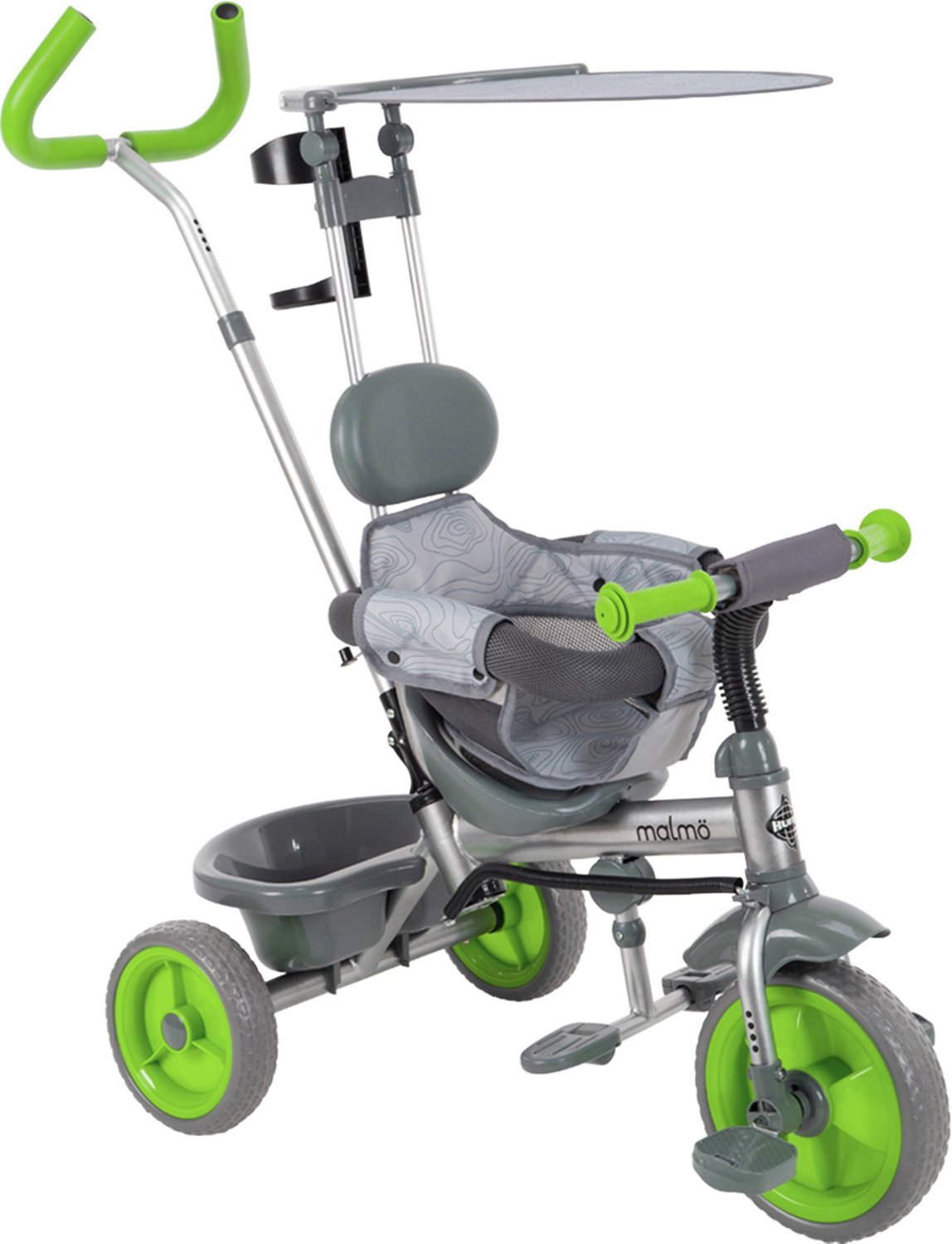 Introduce your child to riding early with the Huffy Malmo Conversion 3-in-1 Tricycle. This 3-in-1 tricycle has a convertible design that helps your child go from parent steering to riding on their own. It has a steel frame for durability and a bucket seat with a removable polyester seat insert and headrest for comfortable riding.
