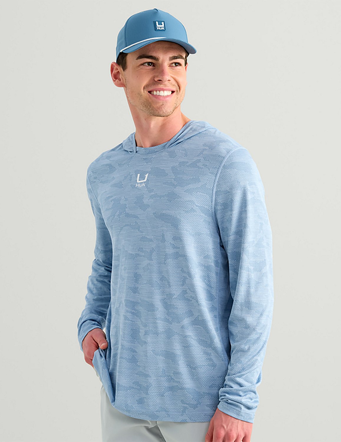 Look your best when you wear the Huk Men's Andros Hoodie. It is made of 100% polyester. The moisture wicking technology wicks away sweat to keep you dry, and its UPF 40+ rating provides protection against the sun. The hood provides additional coverage.