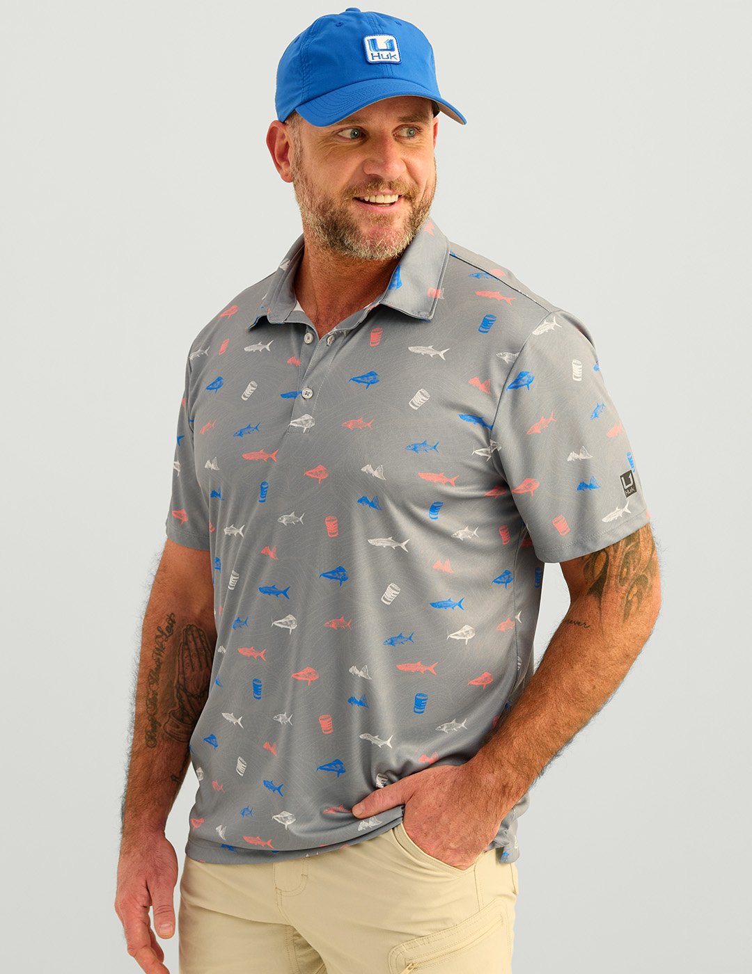 Look your best in the Huk Men's KC Pursuit Printed Polo Shirt. It is made of 100% polyester for durability, and the UPF 50+ rating protects against the sun. Its antimicrobial treatment fights odor, and the collar neckline adds a touch of sophistication.