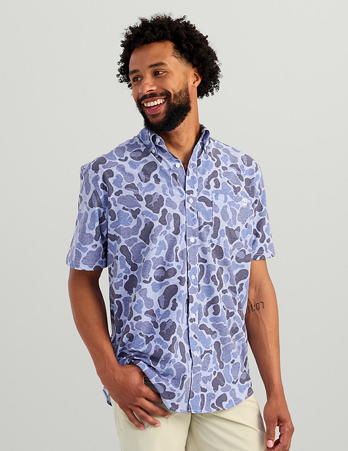 Spend hours outside feeling confident in the Huk Men's Kona Desert Rose Short Sleeve Shirt. The 100% polyester construction offers a long-lasting feel, and the UV protection helps keep your skin safe under the sun. The left chest pocket provides room to conceal items, and the Huk logo on the pocket shows your brand pride.