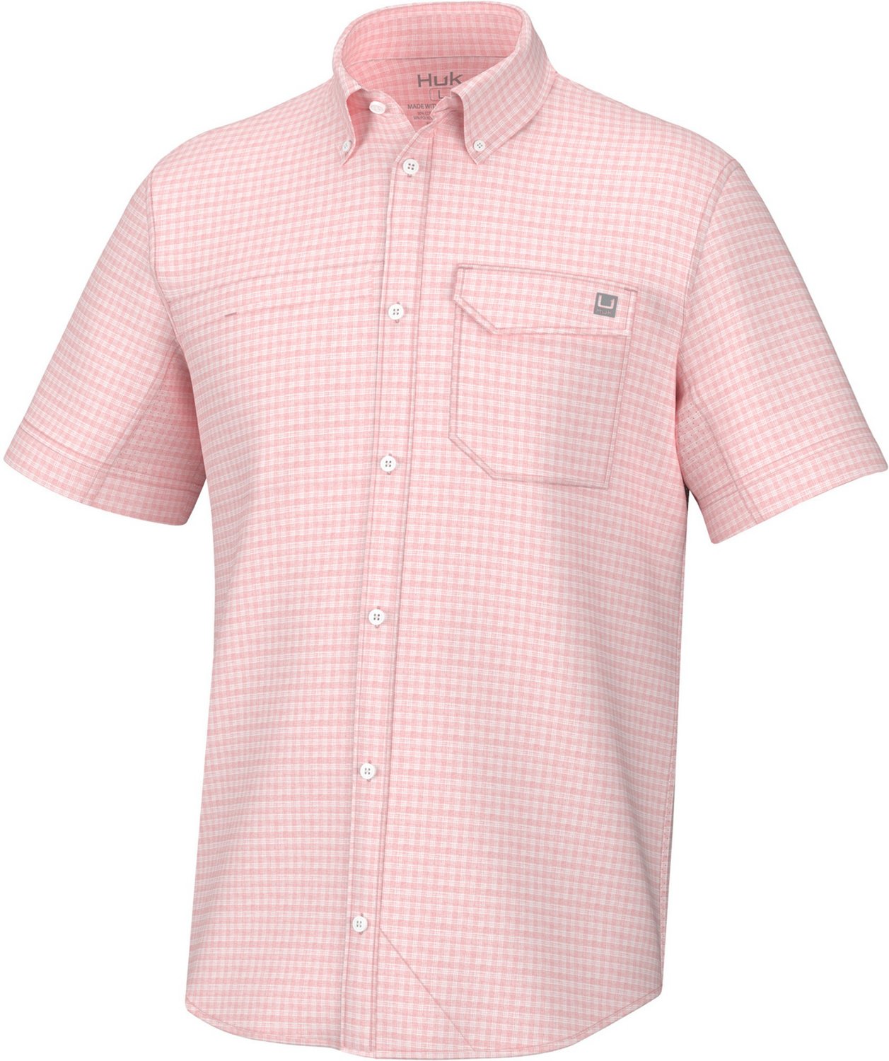 Feel the breeze as your reel in your next trophy with the Huk Men's Tide Point Break Minicheck Button Down Shirt. The polyester material provides a comfortable feel, while the graphic design offers a stylish look.