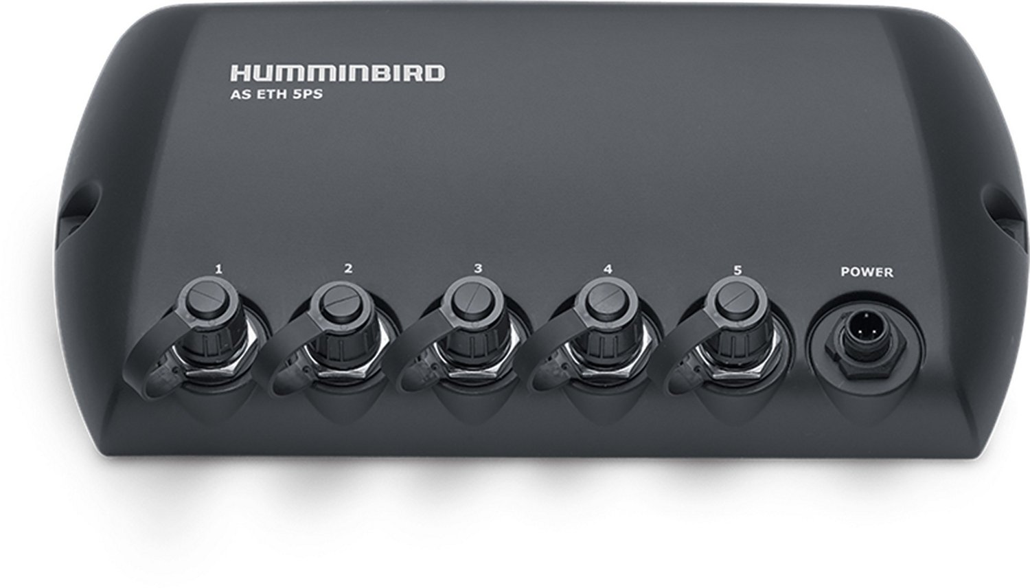Set up your onboard network with the Humminbird AS-ETH-5PXG 5-Port Ethernet Switch. Its 5 ports let you connect multiple devices, share transducers and add or upgrade a network. Its waterproof construction enables safe use in marine conditions.