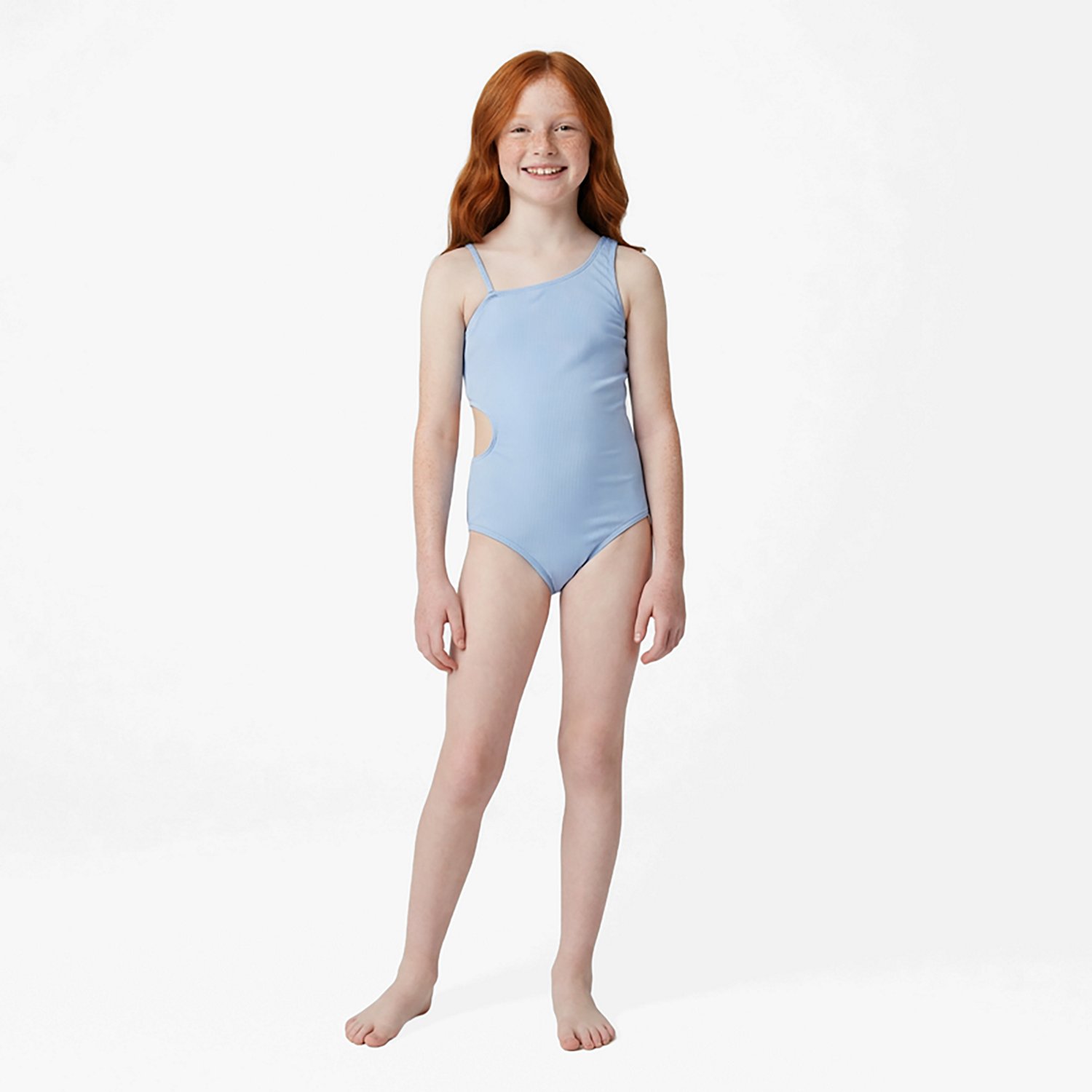 Combining style and softness, the abercrombie kids Girls' Asymmetrical Cutout 1-Piece Swimsuit is a swimsuit that is sure to become a favorite. The 1-piece is made of polyester and elastane jacquard swim rib fabric that dries quickly and allows comfort, and the asymmetrical cutout adds a decorative design.