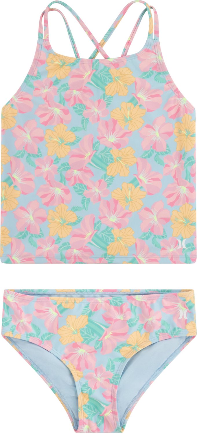 Take a dip in the pool with the Hurley Girls' Strappy Tankini Set. The straps offer a secure fit, while the allover floral print provides a stylish look.