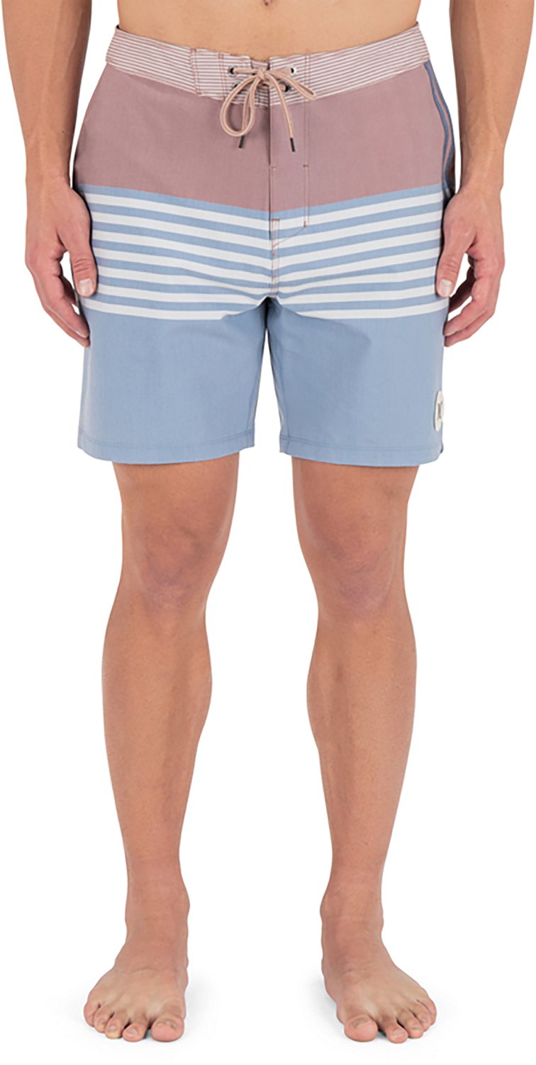 Splash around in the Hurley Men's Phantom Naturals Tailgate Swim Shorts 7 in. They are made of 57% cotton, 33% repreve, and 10% spandex. The DWR-coating offers a water repellent, quick drying wear, and their stretch taping on the legs add mobility. The back pocket with hook-and-loop and grosgrain pull provides a secure, easy access.