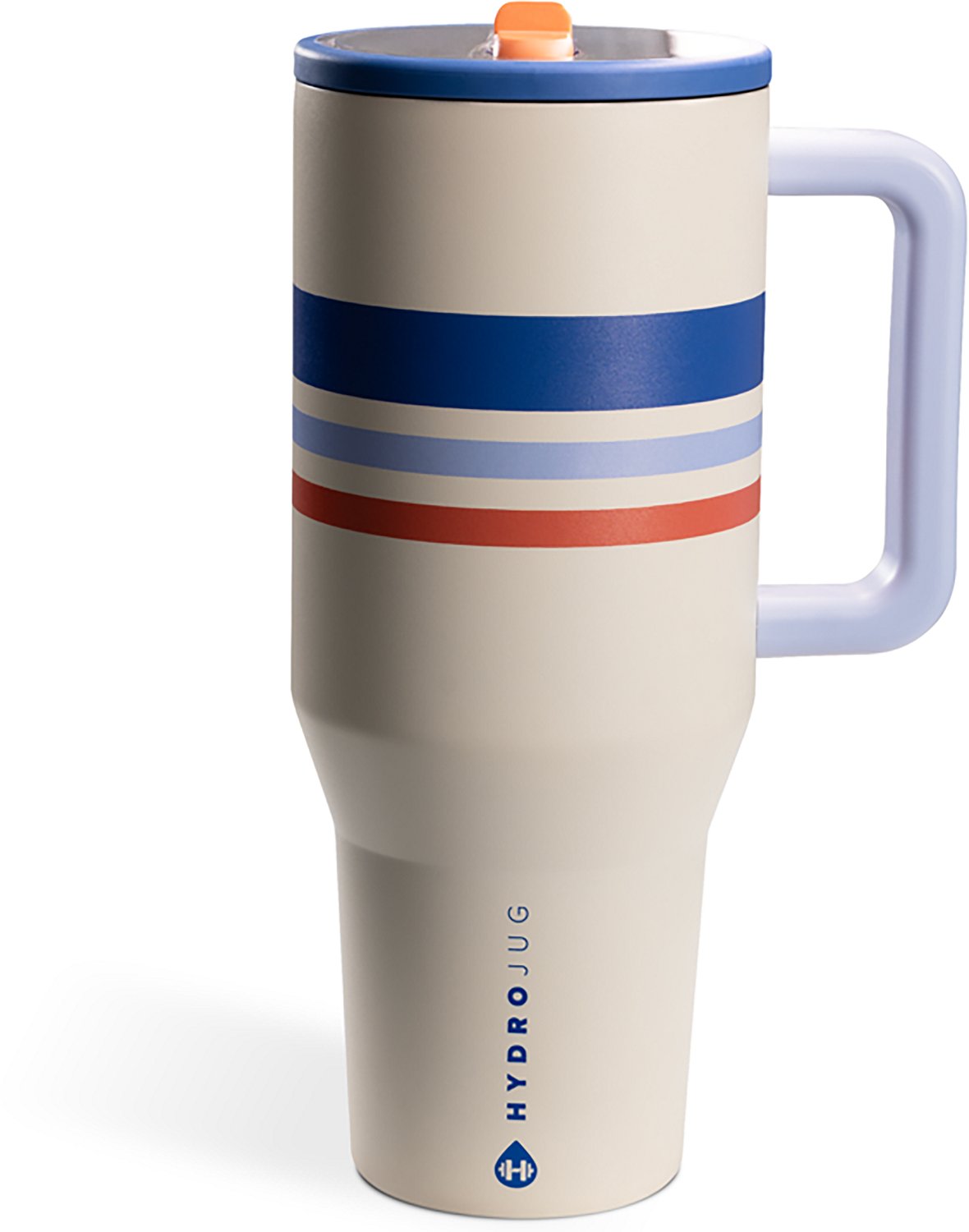 Stay hydrated on the go with the HydroJug Traveler 32 oz Tumbler. It can fit into most car cupholders, and the rubber base secures the tumbler on hard surfaces. The leakproof construction helps prevent spills, and the triple-wall insulation keeps your drink ice cold for hours.