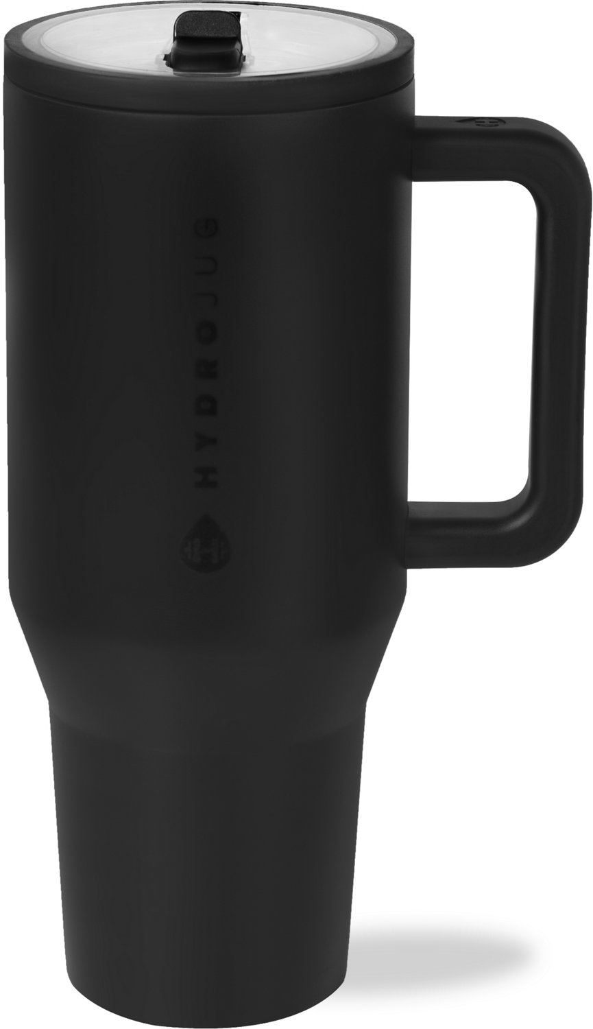 Stay hydrated on the go with the HydroJug Traveler 40 oz Tumbler. It can fit into most car cupholders, and the rubber base secures the tumbler on hard surfaces. The leakproof construction helps prevent spills, and the soft-touch ambidextrous lid promotes easy sipping.