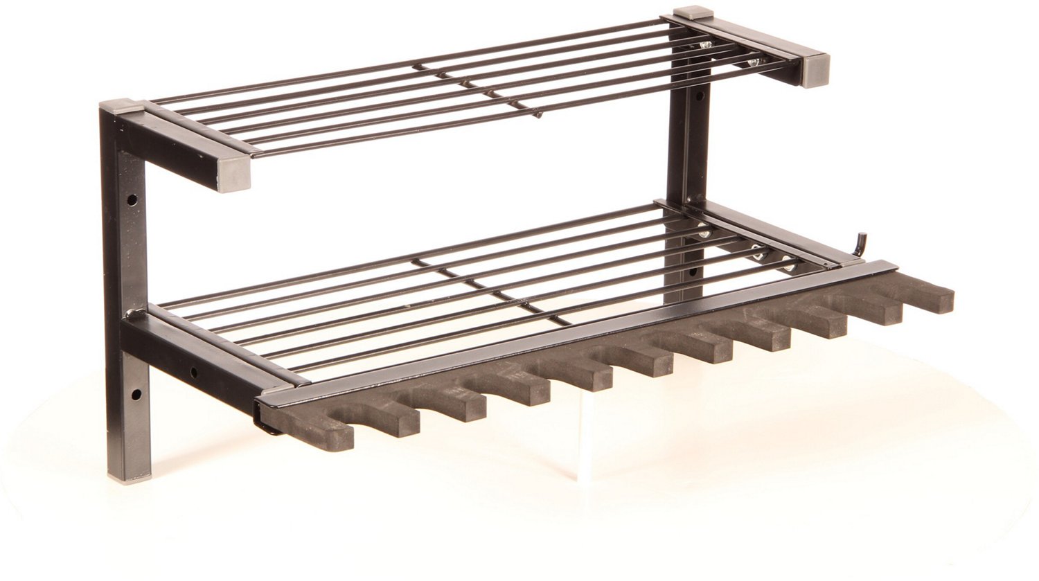Keep your long guns organized with the Hyskore 10 Gun Wall Mount Gun & Gear Rack. This wall-mounted shelf system supports up to 30 pounds and can fit 10 long guns with or without scopes. The welded steel construction provides durability, and the foam padding prevents scratches. Included hooks let you hang holsters, ammo bags and other gear.