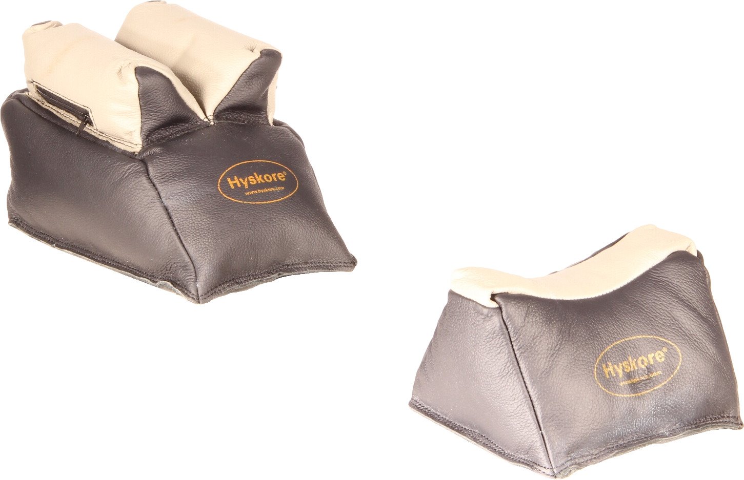 The Hyskore Rabbit-Ear Rest Bag is constructed of 100% top-grain leather for durability and is filled with nonreactive, nonorganic plastic pellets. Zipper closures and an internal flap to offer easy filling and unfilling. Measures 5"W x 9"L.