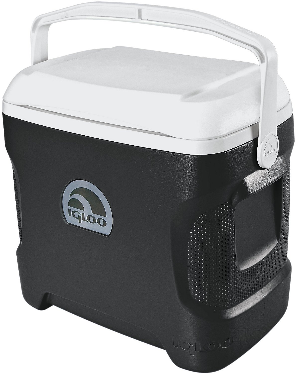 Take the Igloo Contour™ 30 qt. Personal Cooler on your next camping trip. This cooler is made of sturdy polyethylene and polypropylene and features Cool Riser Technology™, which offers an elevated design to promote airflow underneath. Ergonomically designed with a curved back that hugs your body, it also features a swing-up handle that has 3 grab-and-carry points for comfortable carrying and molded side handles for easy transport in and out of your vehicle. Slotted lid allows for easy stacking.