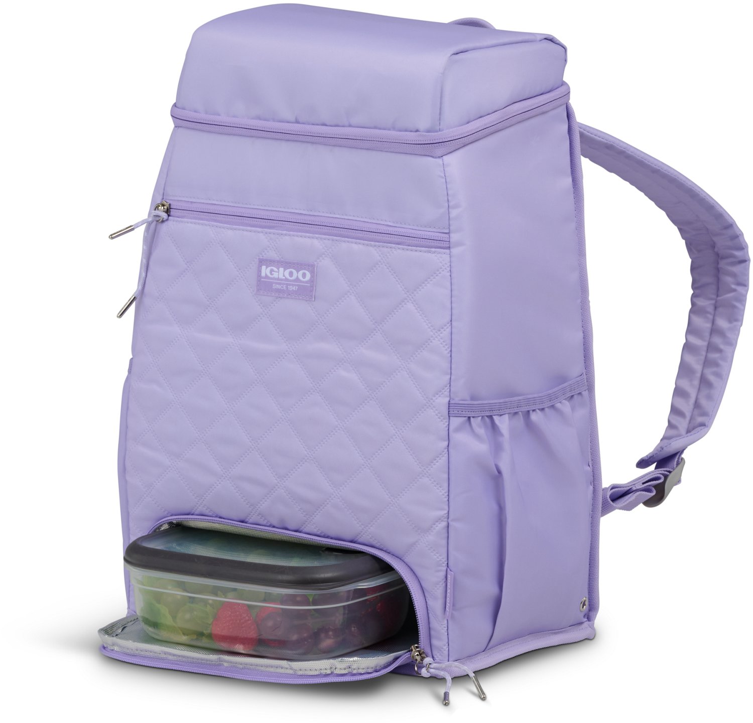 The Igloo Duo 20 Can Softsides Backpack is an ideal companion for picnics, workdays or outdoor adventures. Its diamond-quilted exterior adds a stylish touch, while the fabric is crafted from recycled materials for durability. Featuring dual stacked compartments, this backpack offers convenient organization, allowing you to separate snacks, drinks and other essentials. With enough space to hold up to 20 cans, it provides ample storage for your favorite refreshments. Designed for hands-free carrying, it’s a comfortable and versatile way to keep food and beverages cool while on the move.