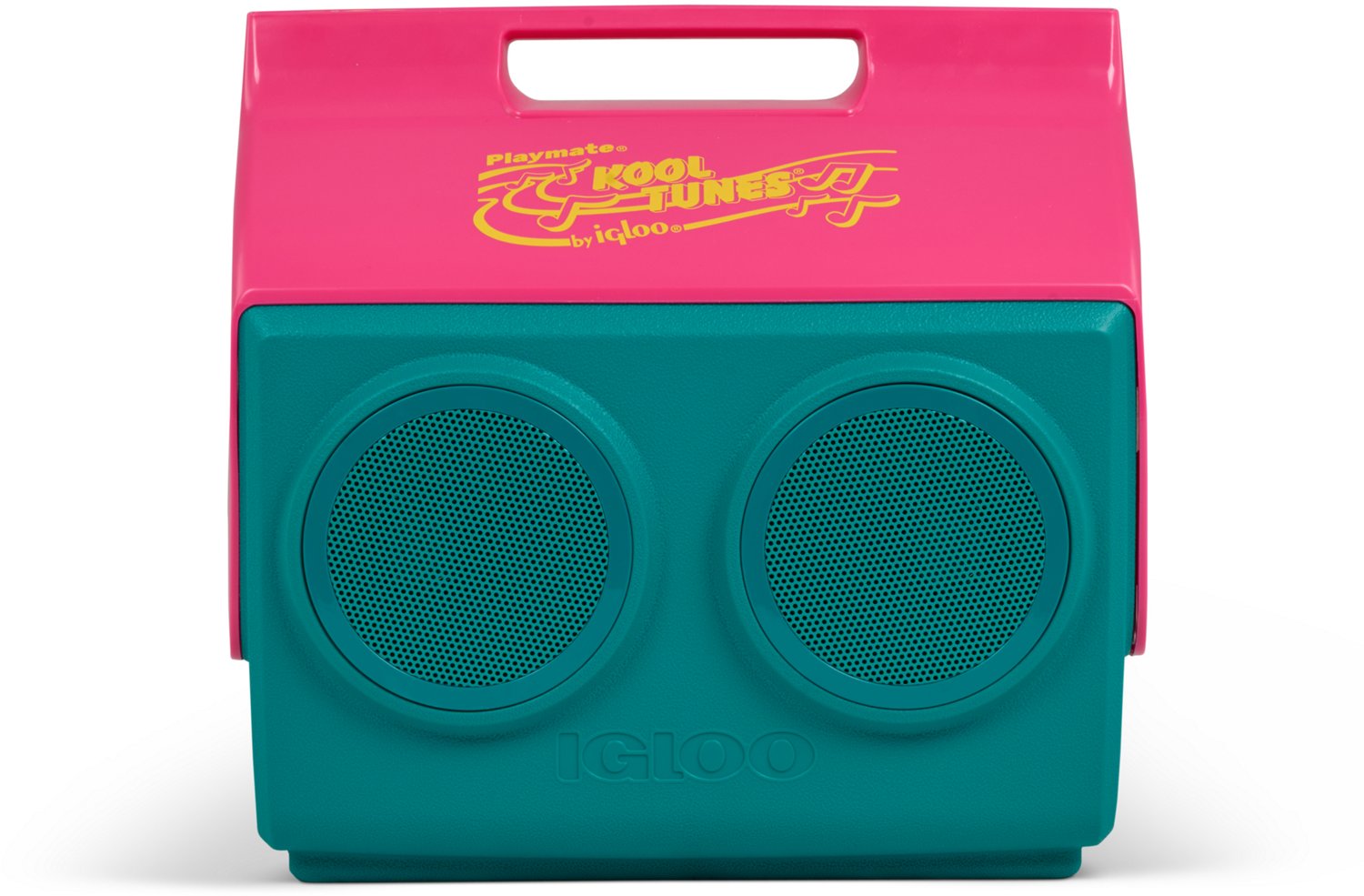 The Igloo Kooltunes Playmate 14 Qt Cooler combines retro vibes with modern functionality, making it the ultimate cooler for music lovers on the go. This Playmate Classic features built-in twin 5-watt speakers and uses Bluetooth technology to let you stream your favorite tunes.