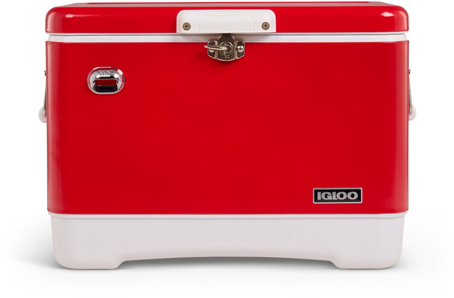 The Igloo Legacy 54 Qt Cooler combines a rugged design with functional features to keep your refreshments chilled and ready. Its exterior is crafted from durable stainless steel, offering a stylish and rust-resistant finish. With Cool Riser Technology®, it stays elevated off hot surfaces to enhance cooling, while Ultratherm® insulation in the body and lid maintains a colder temperature for extended periods.