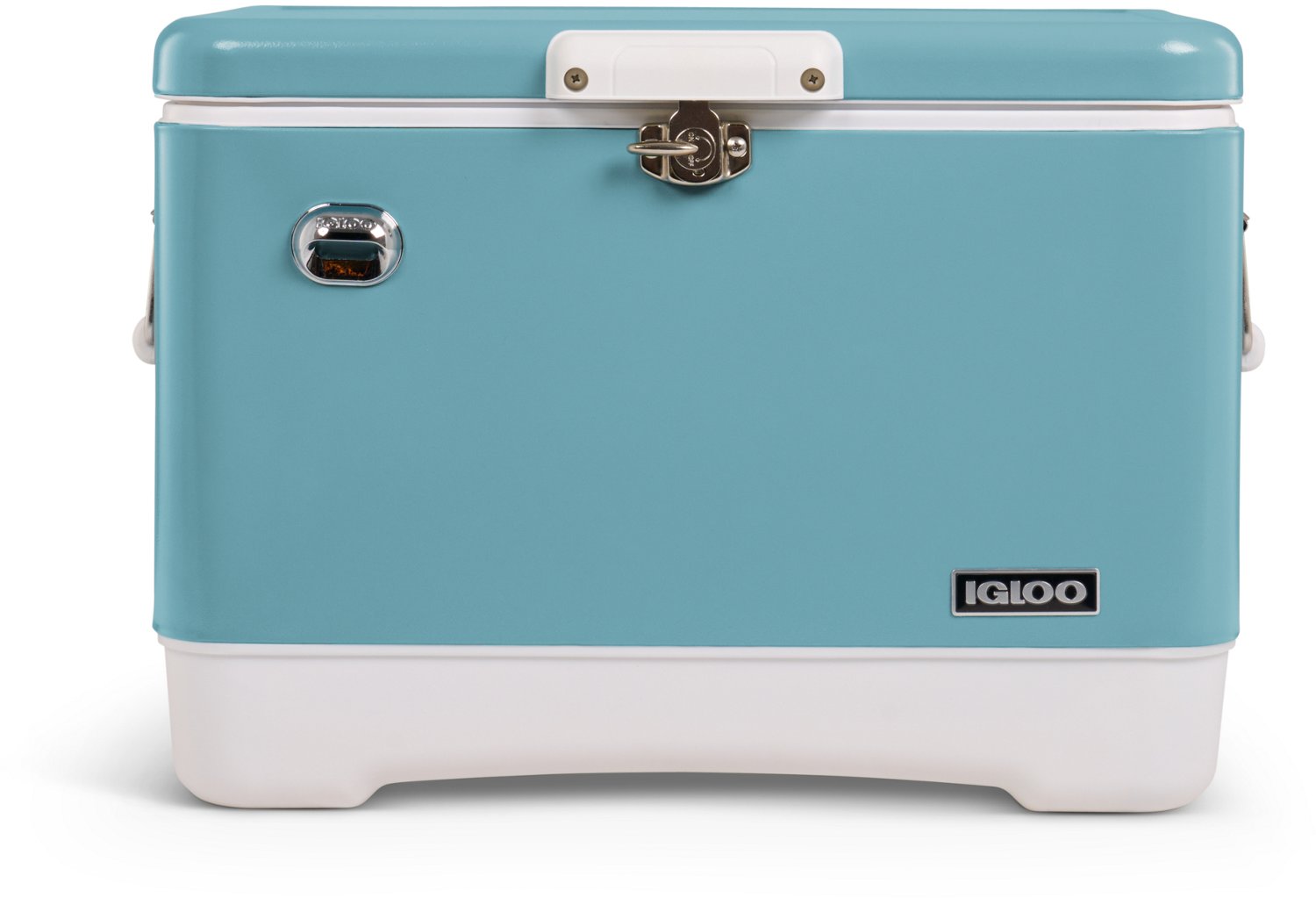 The Igloo Legacy 54 Qt Cooler combines a rugged design with functional features to keep your refreshments chilled and ready. Its exterior is crafted from durable stainless steel, offering a stylish and rust-resistant finish. With Cool Riser Technology®, it stays elevated off hot surfaces to enhance cooling, while Ultratherm® insulation in the body and lid maintains a colder temperature for extended periods.
