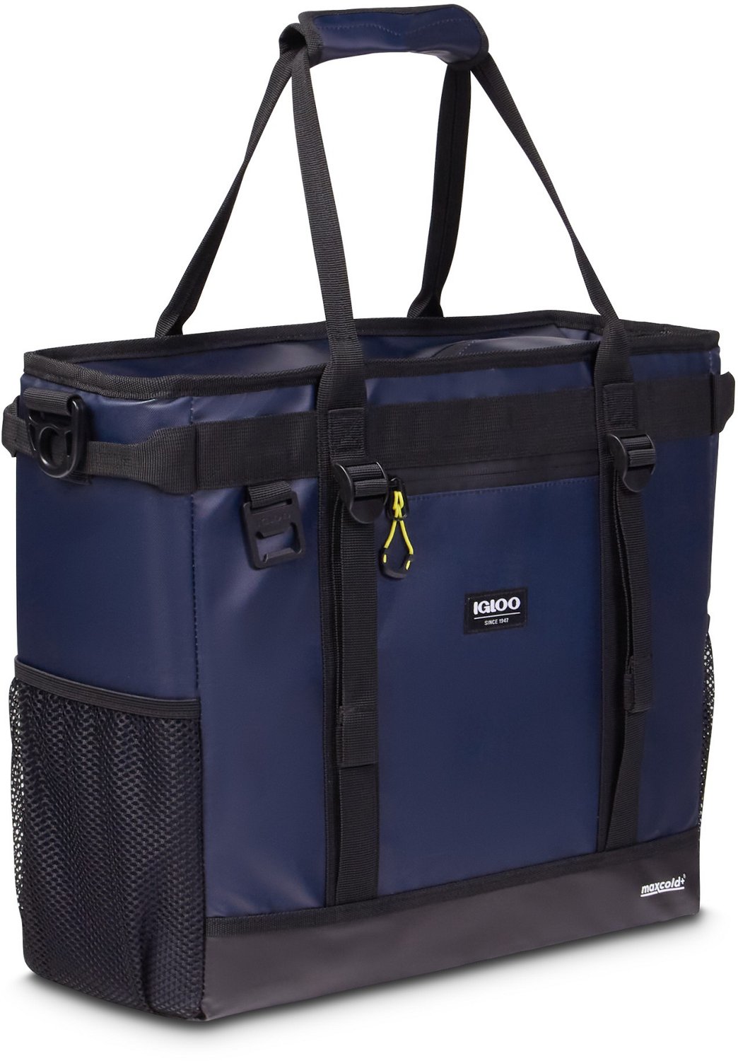 Keep drinks cold wherever you go using the Igloo Maxcold+ Ascent 30-Can Tote. The 600D polyester construction with TPE coating and soft sides delivers long-lasting durability, and the Maxcold+ Insulation locks in cold air for cold storage of items.