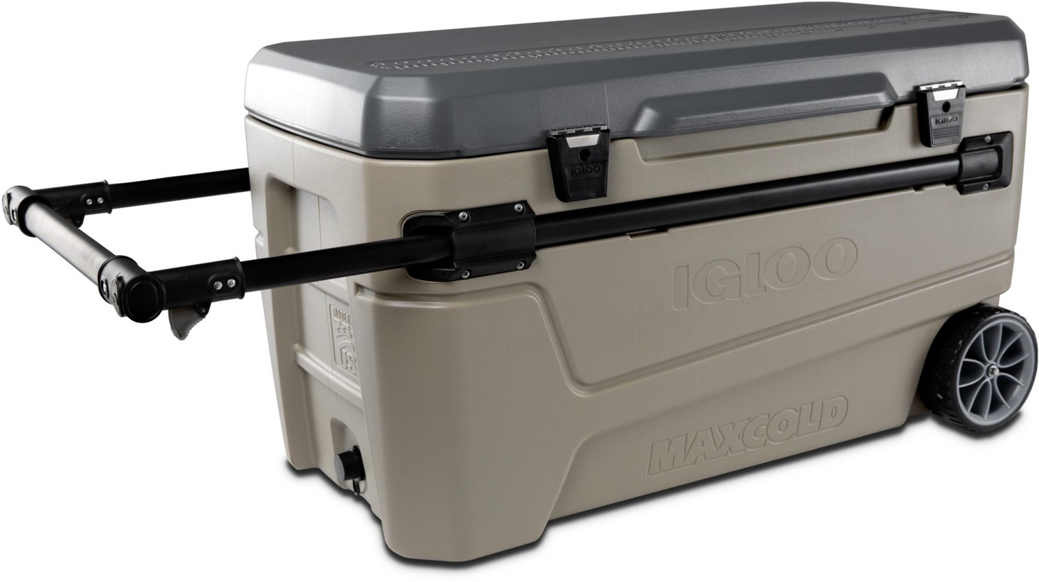 Load up your boat for a trip out on the water with the Igloo MaxCold Glide 110 qt Full-Size Wheeled Cooler. Ultratherm™ foam insulation maintains ice cold temperatures for up to 6 days at 90 degrees F, while the ruler on the lid gives you the ability to measure your catch. Stainless-steel hinges and a hybrid latch help keep contents secured, and the horizontal telescoping handle and soft-ride wheels enable easy transport. Made in USA.