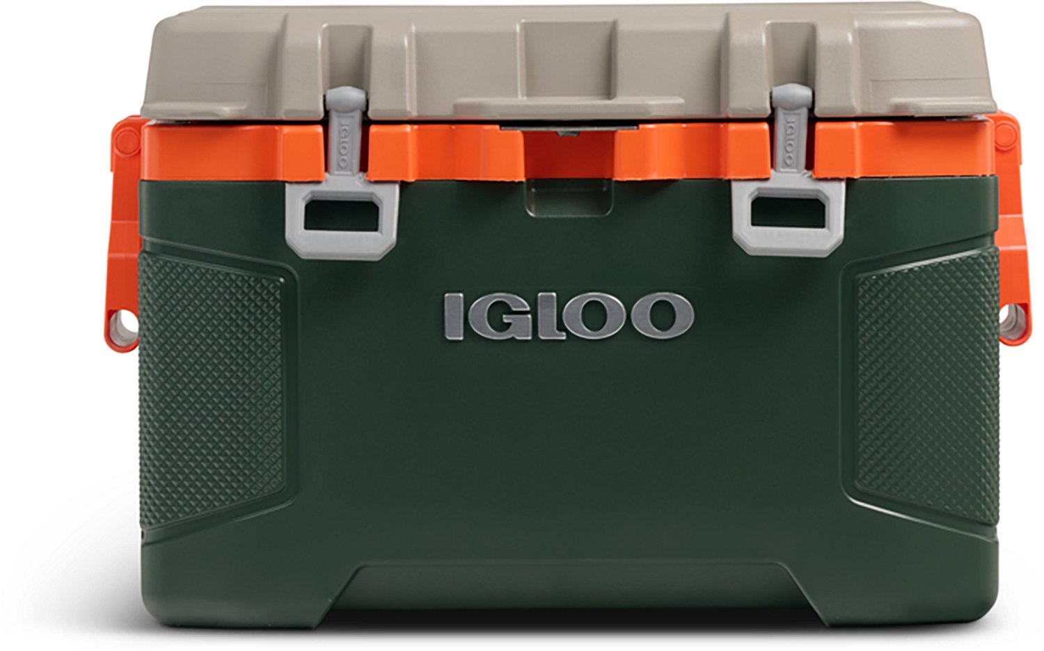 Keep your food and beverages cold while camping with the Igloo Trailmate 50 Quart Hard Cooler. This hard-sided cooler has foam-insulated walls and an insulated lid to help keep the contents cold for hours. The side handles feature a reinforced crossbar and textured grips for a secure hold and comfortable carry. The lid features a locking plate that doubles as a bottle opener and dual-sized cup holders to keep your drinks within reach. Made in USA.