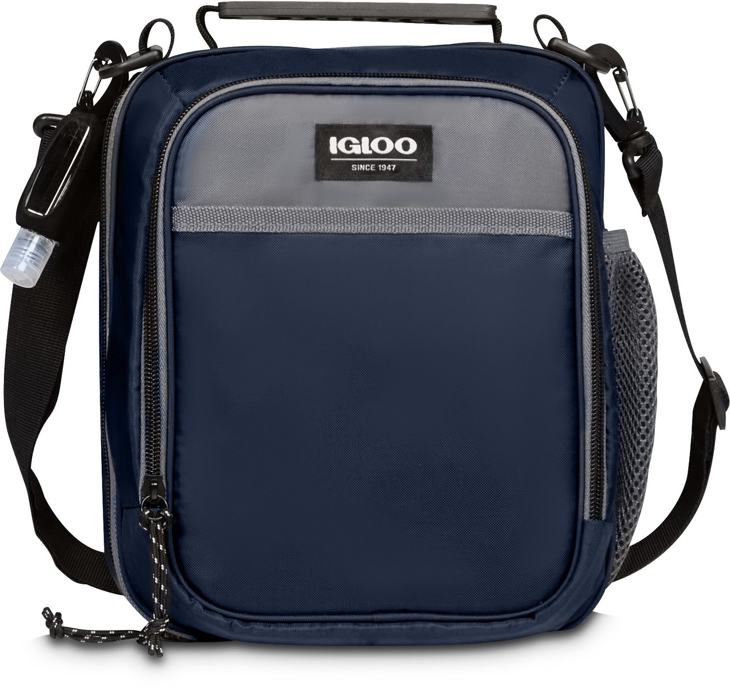 Bring your lunch and hand sanitizer with you on-the-go when you use the Igloo Vertical Everyday Lunch Box with Hand Sanitizer. There is a 1-ounce, refillable hand sanitizer bottle affixed to the lunch box to help you stay safe, and the polyester exterior delivers durability.