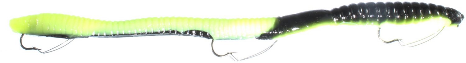 Step up your bass fishing game with the IKE-CON Big 8ight Weedless 6-1/4 in Worm Bait. The realistic appearance mimics the movements of a live worm, and the bait skips under and around vegetation with ease. The worms can be fished with a weed line or with Carolina rigging. Made in USA.