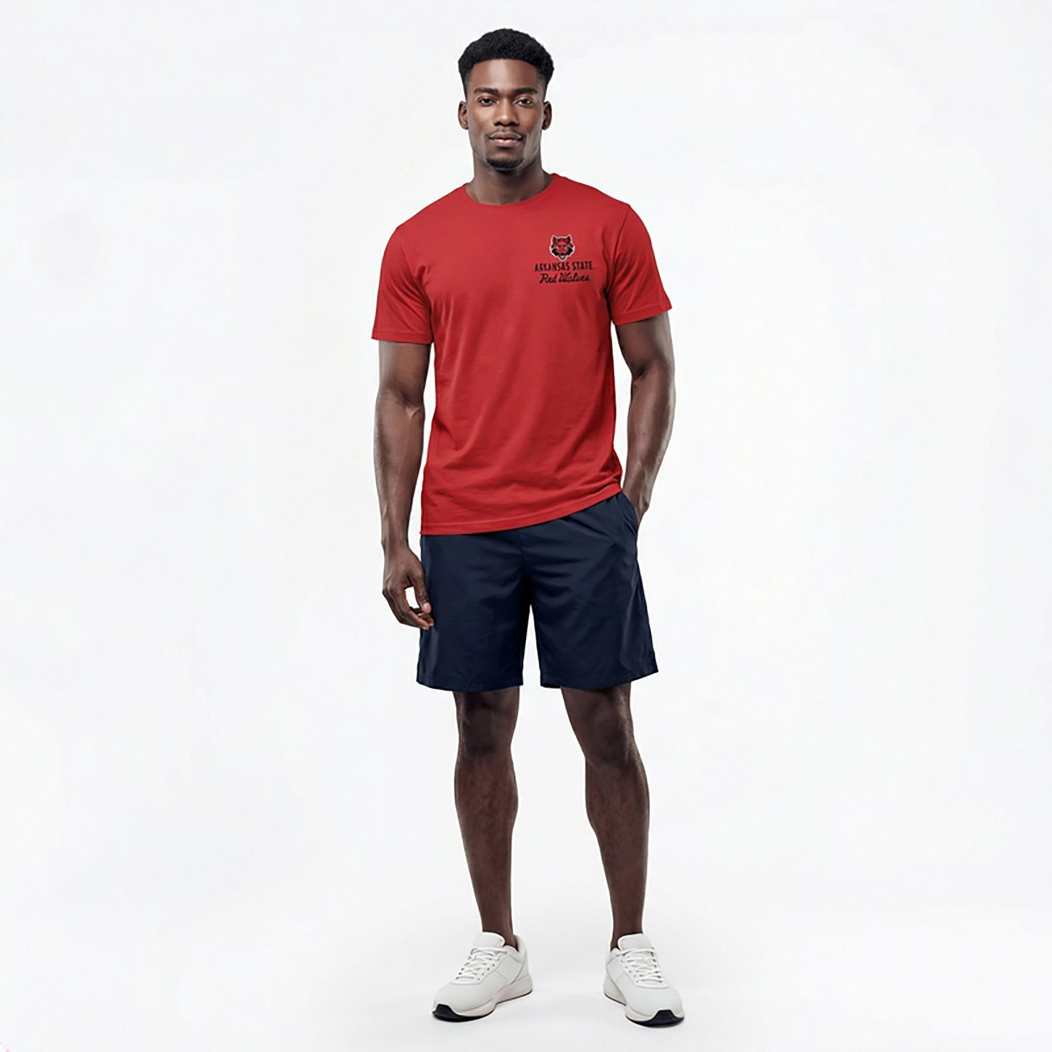 Show your support with the Image One Men's Arkansas State University Red Wolfs Mascot Overlay Short Sleeve T-shirt. The cotton material is soft and breathable, and the Arkansas State University Red Wolfs graphics show your fandom with pride.