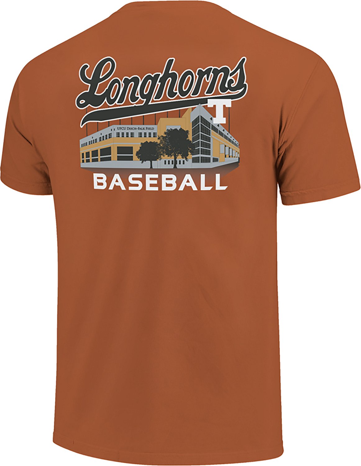 Image One Men's Texas Longhorns Stadium Baseball Script DS Short Sleeve T-shirt