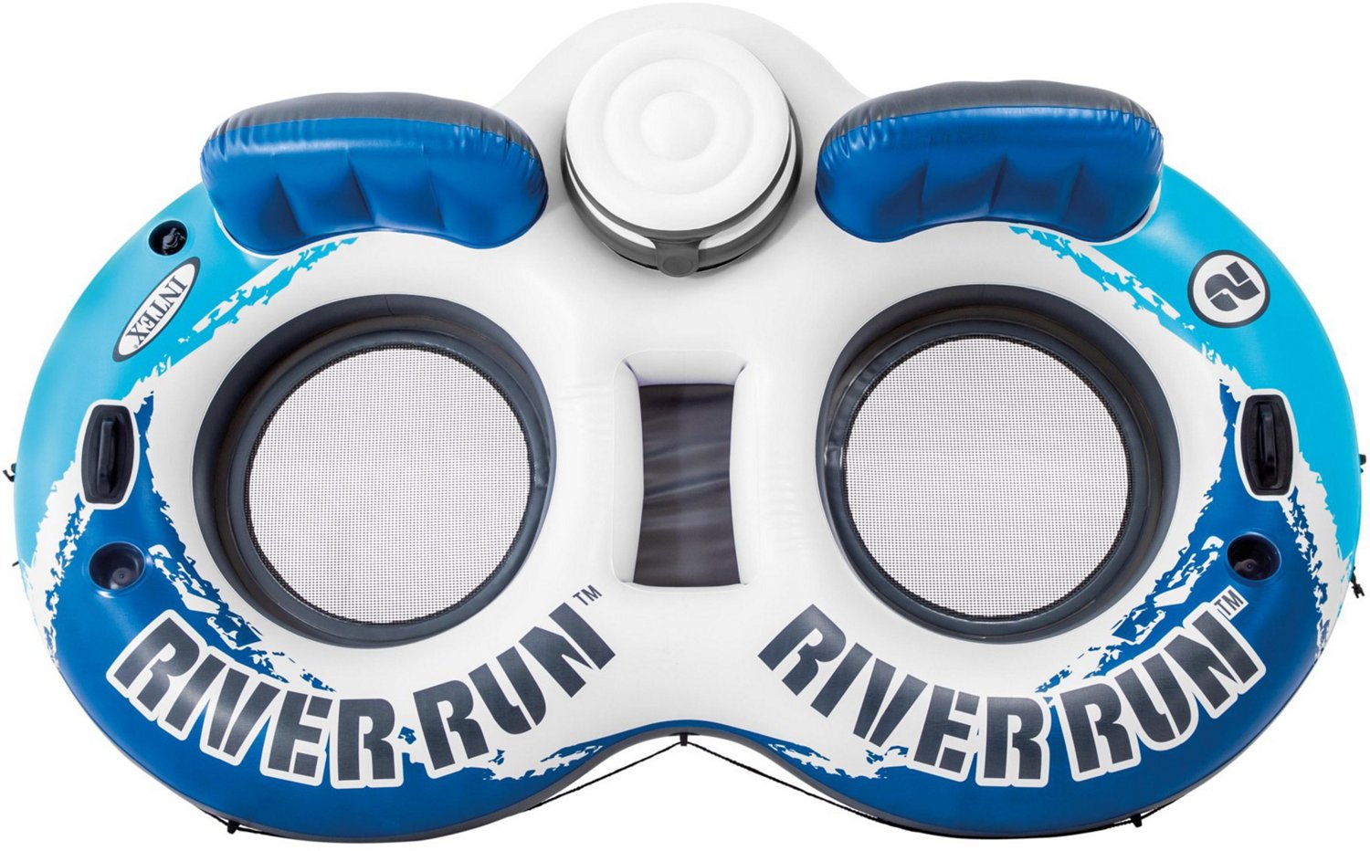 Enjoy a day on the water in the INTEX River Run 2 Lounge Float with Cooler. The PVC and PP construction provides durability and the mesh bottom keeps you cool. The built-in backrest allows for comfortable cruising, while the large built-in cooler and cupholders keep your drinks handy.