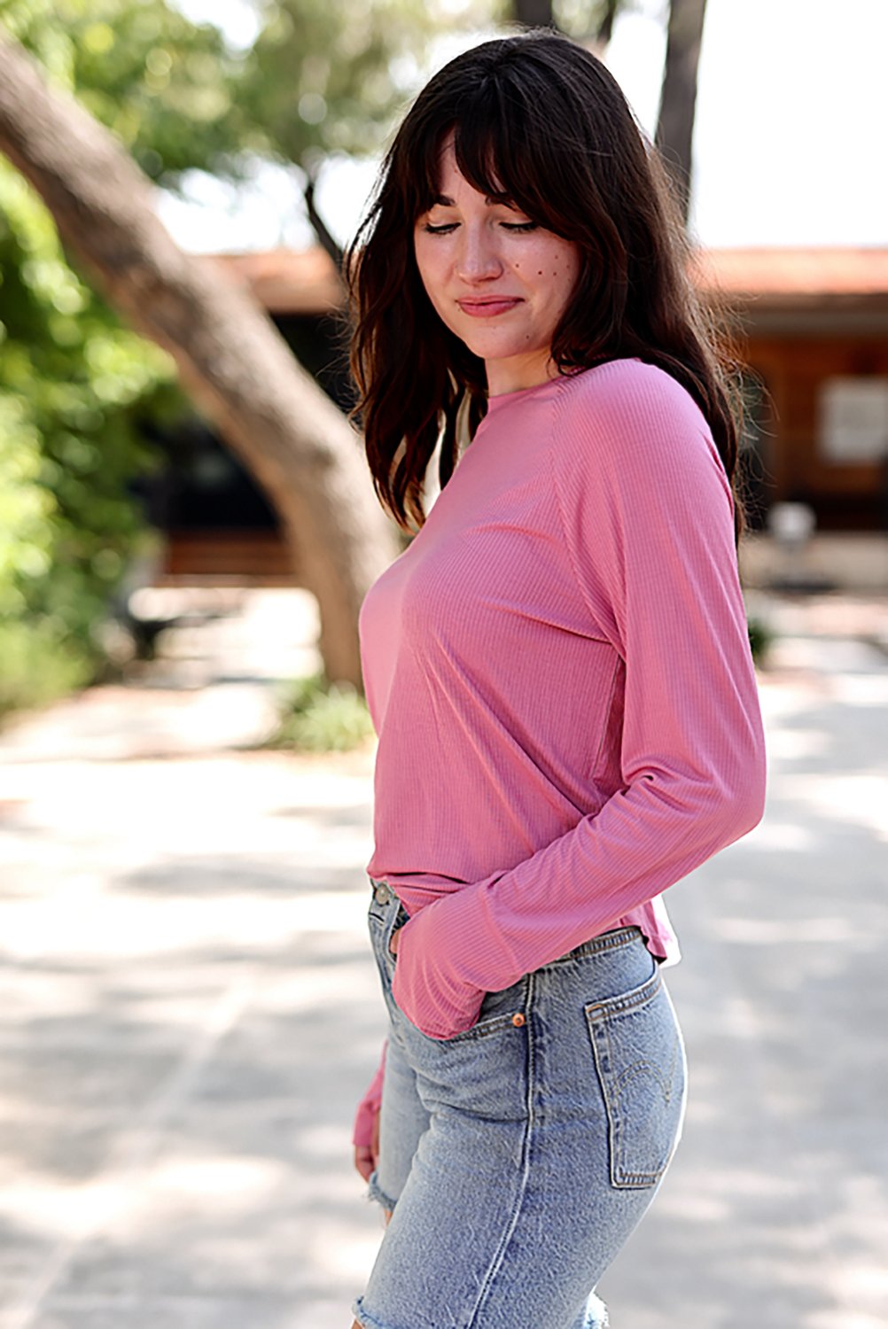 Look your best when you wear the Jadelynn Brooke Women's Never Better Ribbed Long Sleeve Crewneck Shirt. It is made of 95% modal and 5% spandex. The crew neckline creates a casual look, and its convenient thumb holes offer warmth. The scoop hem on the front and back create a flattering style.