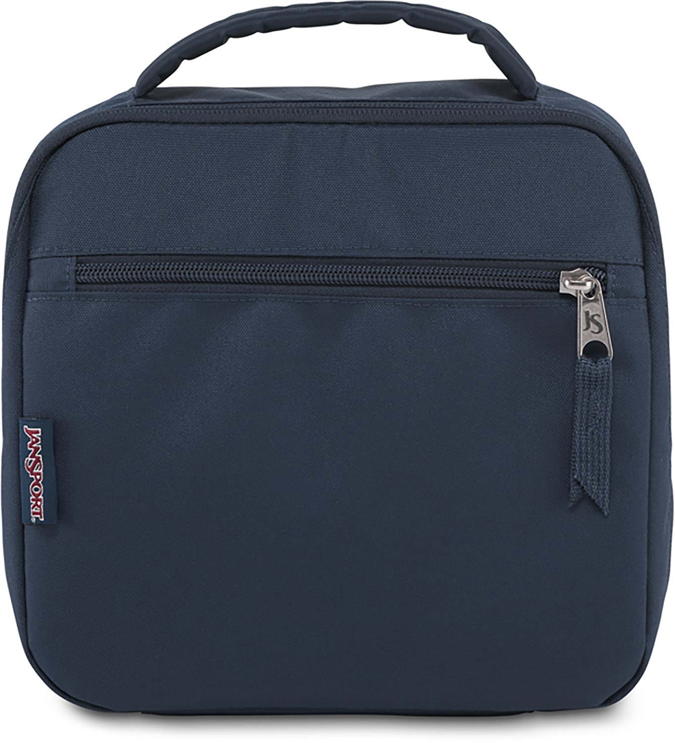 Pack for the picnic with the JanSport Lunch Break Insulated Lunch Tote. The insulated main compartment keeps food hot or cold, while the angled opening allows for use as a lunch tray. The external zippered pocket lets you stash utensils, napkins and more, and the padded grab handle offers comfortable carrying.