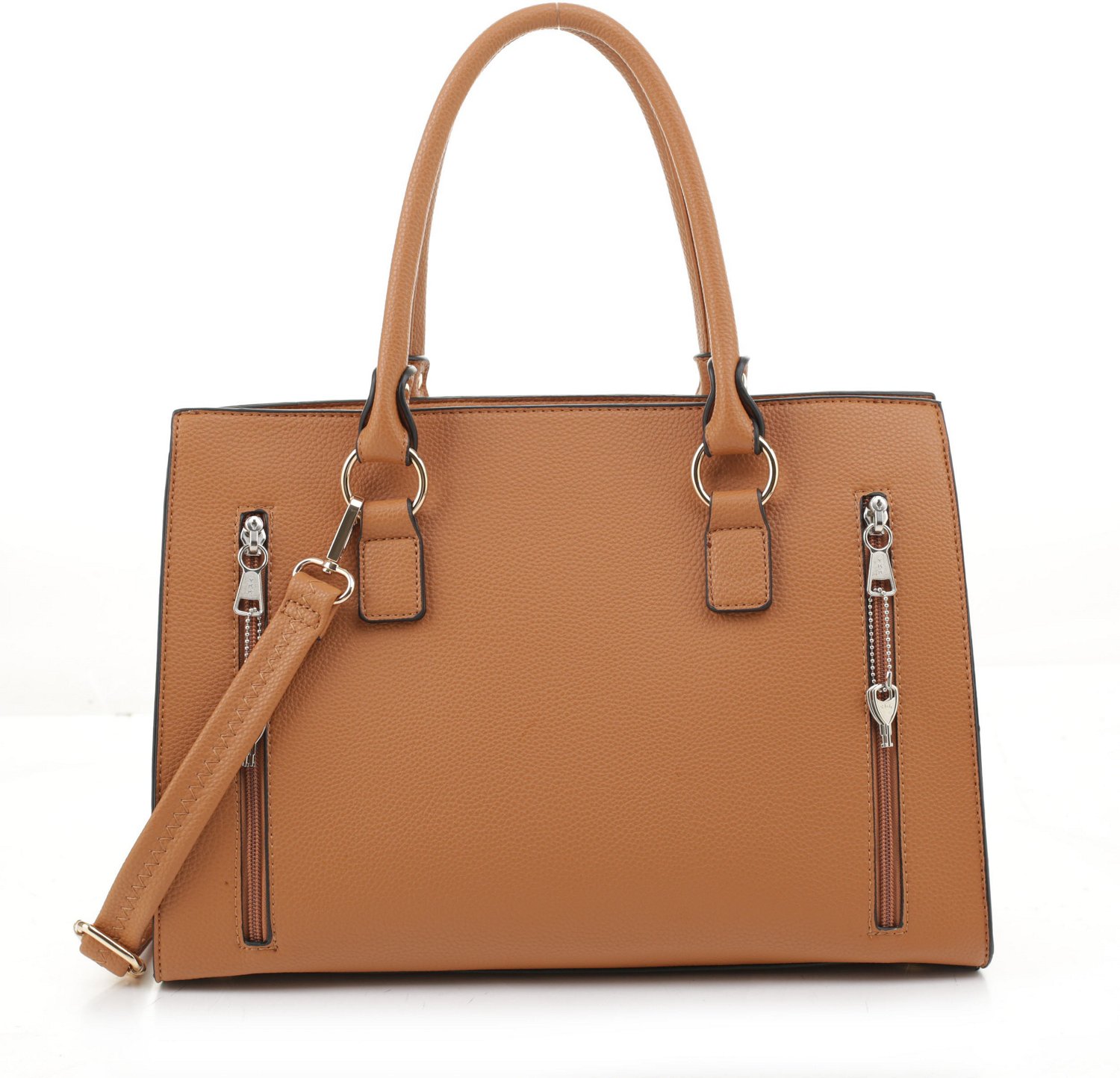 Carry your firearm in style using the Jessie & James Dina Concealed Carry Lock and Key Satchel. This satchel is made with faux leather for durability and has a separately concealed compartment on the back to keep your firearm secure. The lock and key feature adds safety.