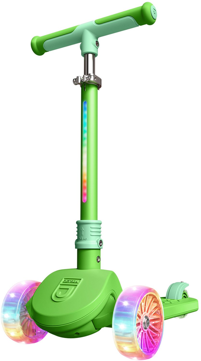 Grow little one's confidence with the Jetson Bloom Go and Grow Kick Scooter. This scooter has playfully colored lights, adjustable handlebars and an anti-tip base that helps kids gain confidence in their scooter abilities. The rear foot brake is easy to reach and helps little ones stop completely, while the lightweight frame is foldable for compact storage.
