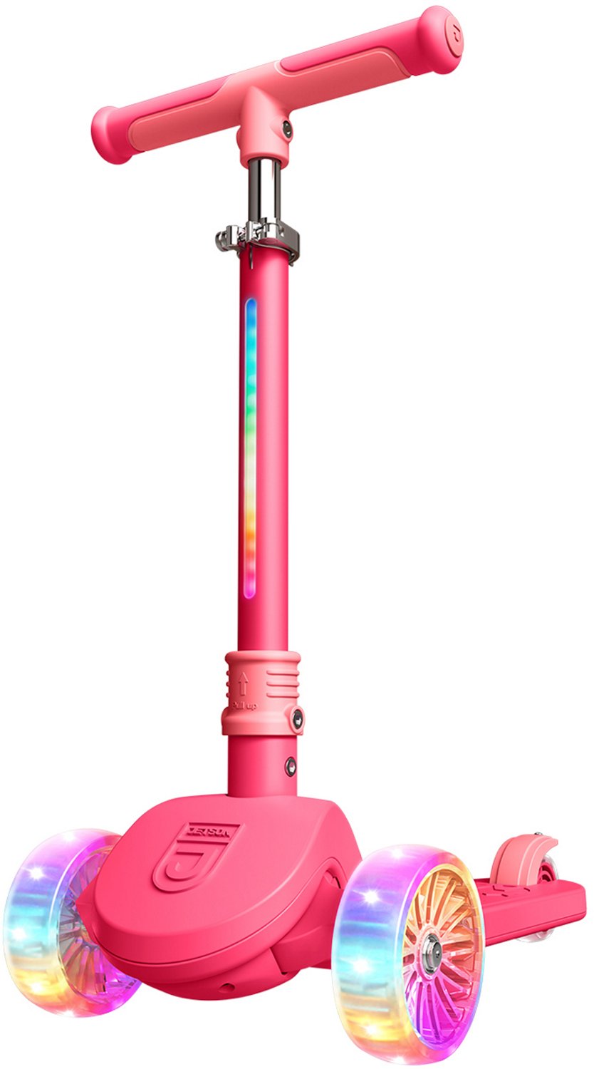 Grow little one's confidence with the Jetson Bloom Go and Grow Kick Scooter. This scooter has playfully colored lights, adjustable handlebars and an anti-tip base that helps kids gain confidence in their scooter abilities. The rear foot brake is easy to reach and helps little ones stop completely, while the lightweight frame is foldable for compact storage.