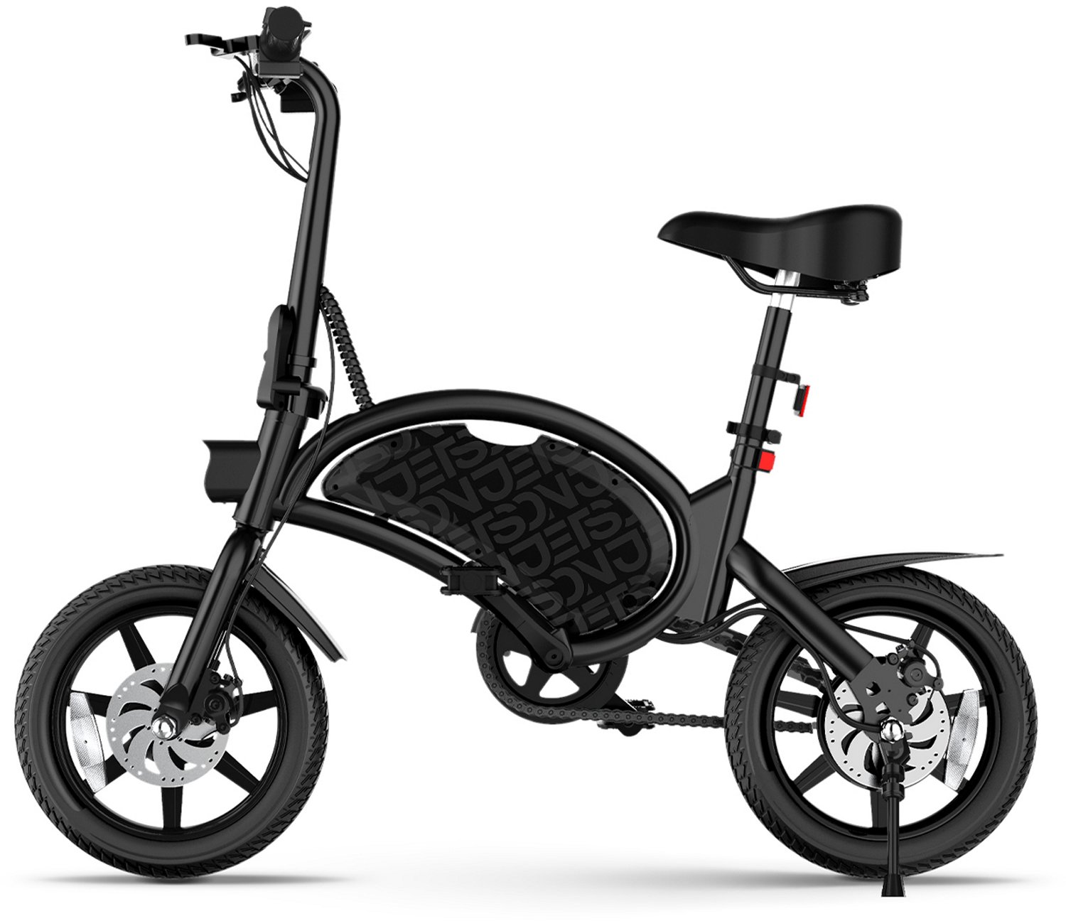 Cruise around town with the Jetson Bolt Pro 14 in Electric Bike. Its 350-watt motor and 36-volt battery offers a top cruising speed of 15.5 miles per hour and a top range of 30 miles. The dual-disc brakes help you stop quickly, while the 14-inch wheels help you tackle difficult terrain. The throttle, electric pedal assistance or cruise control options allow you to customize your ride.